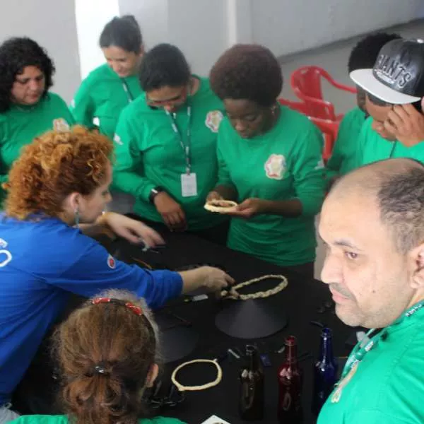 Durante oito meses ensinamos 80 deficientes intelectuais a técnica da vidro fusão. Nesse tempo eles aprenderam a transformar simples garrafas de vidro em peças incríveis. Dentre elas Bijuterias de extremo valor.